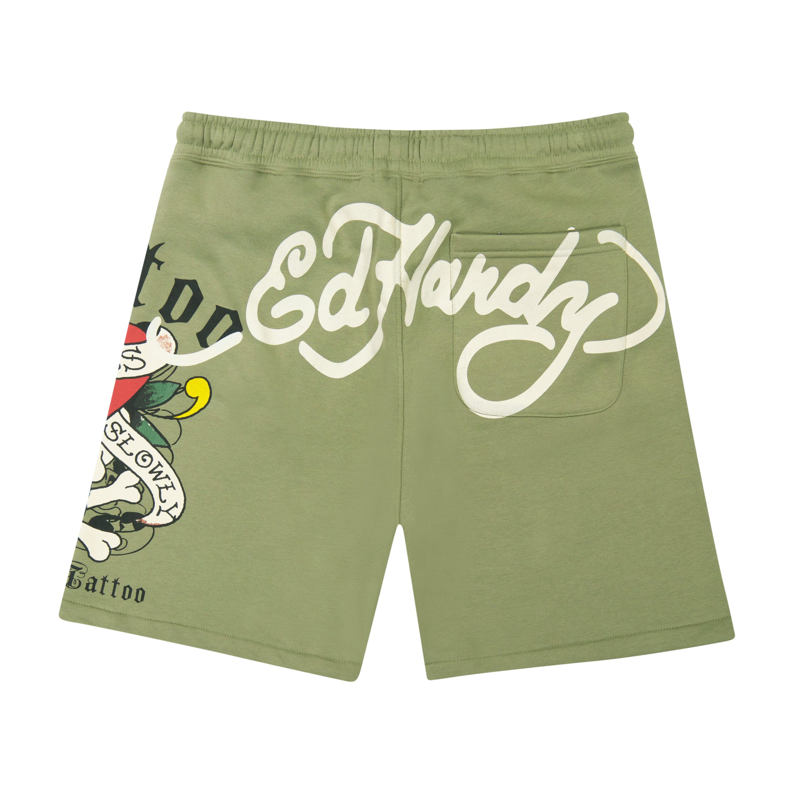 Ultra soft cotton blend fleece shorts featuring an adjustable drawstring. Complete with a signature Ed Hardy LKS graphic and multiple archival logos.