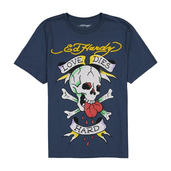 This t-shirt is cut in a regular fit and constructed from a soft cotton blend. Complete with an Ed Hardy Love Skull graphic and two archival blue logos.