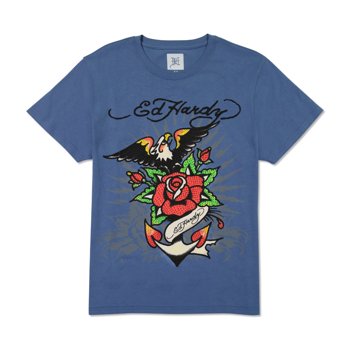 The Eagle Anchor t-shirt from Ed Hardy combines the majestic image of an eagle perched on an anchor. creating a unique nautical-inspired design.