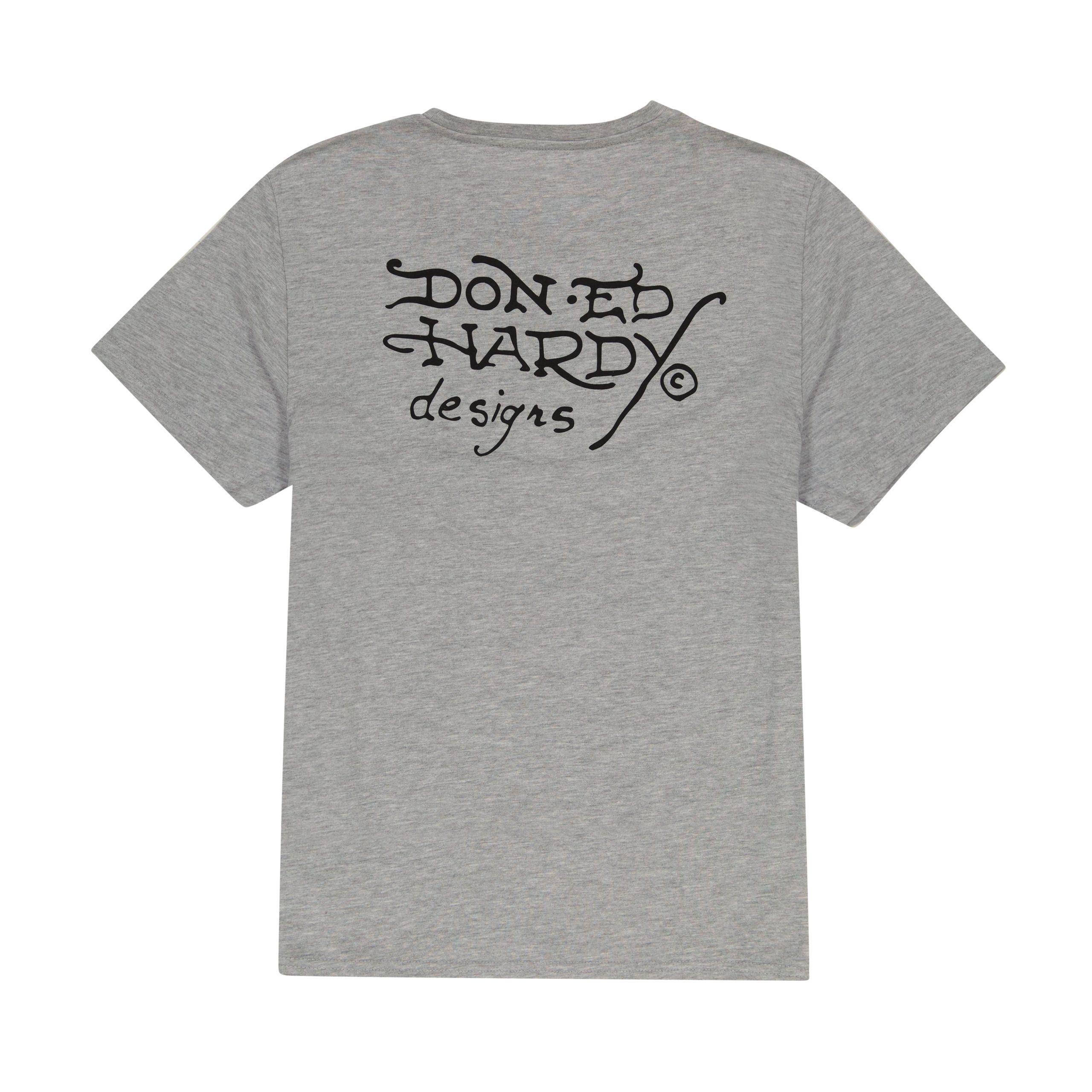 This heather gray tee is constructed from quality cotton to ensure comfort. Complete with rhinestones and an iconic Ed Hardy skull snake graphic.