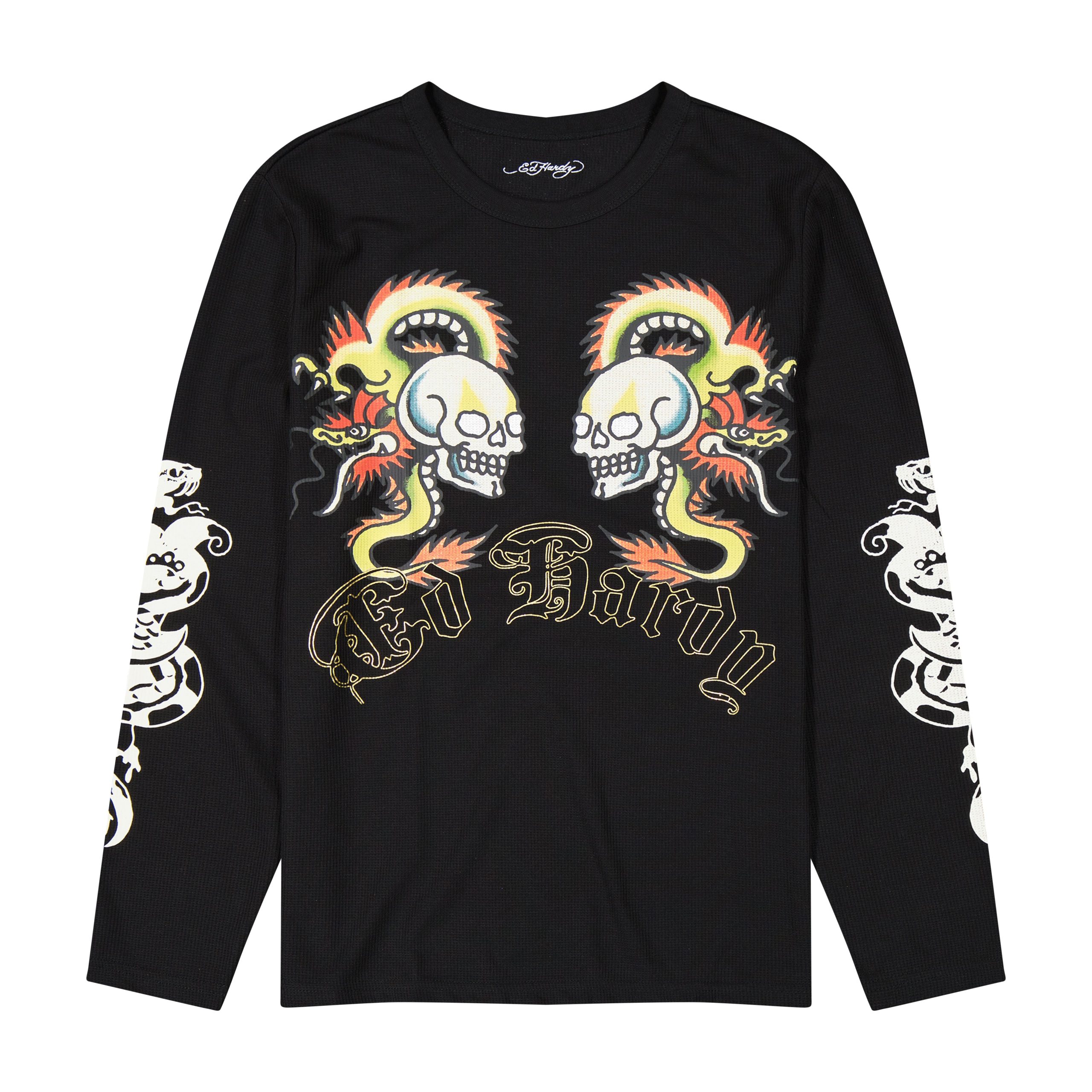This thermal long sleeve features archival Ed Hardy artwork on the front and sleeves. Complete with several iconic Ed Hardy logos.